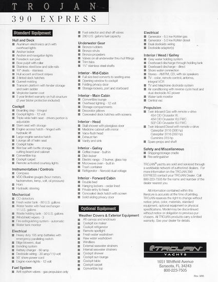Trojan 390 Express Specification Brochure (1995)