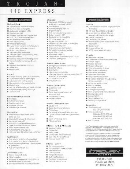 Trojan 440 Express Specification Brochure (1994)