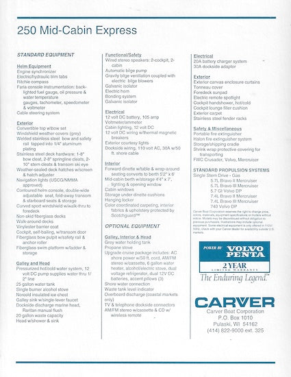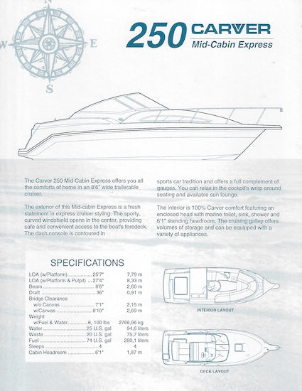 Carver 250 Mid-Cabin Express Specification Brochure
