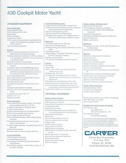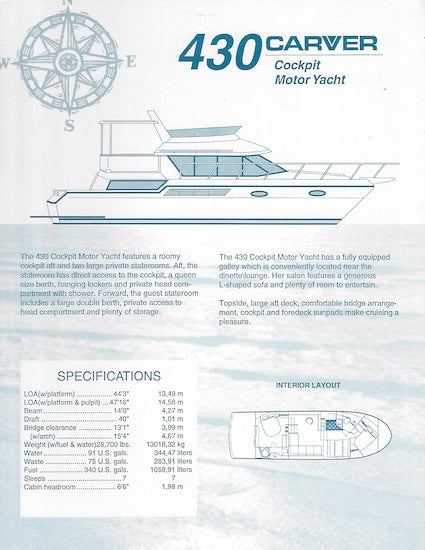 Carver 430 Cockpit Motor Yacht Specification Brochure