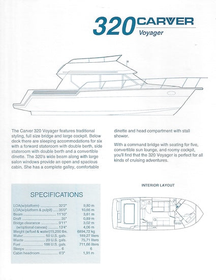 Carver 320 Voyager Specification Brochure