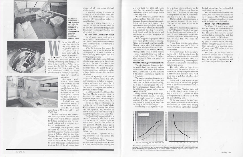 Carver 390 Cockpit Motor Yacht Sea Magazine Reprint Brochure
