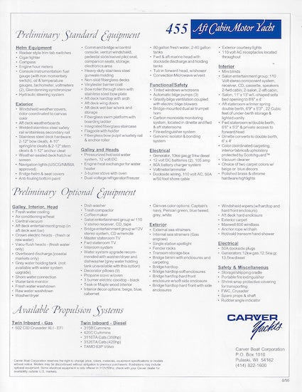 Carver 445 Aft Cabin Motor Yacht Specification Brochure
