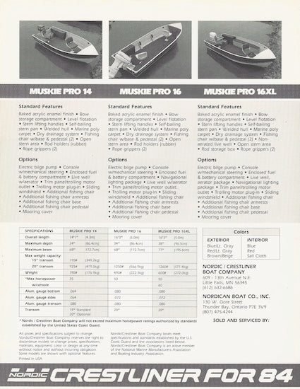 Crestliner Muskie Pro Series Specification Flyer Brochure