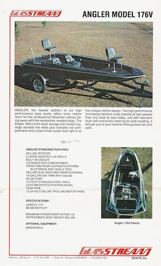 Glasstream Angler 176V / Hydra Bass 1500 V Specification Brochure