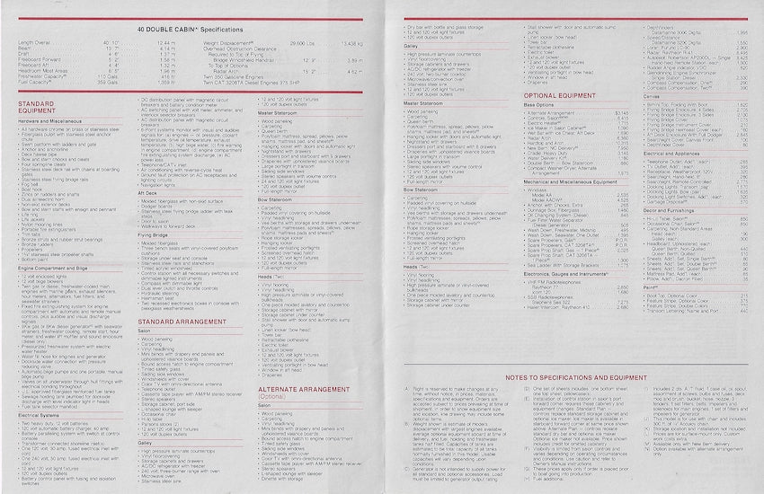 Hatteras 41 Double Cabin Motor Yacht Specification Brochure