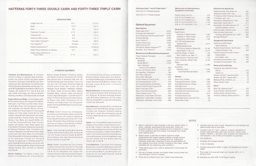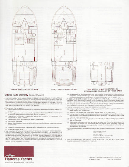 Hatteras 43 Double & Triple Cabin Specification Brochure