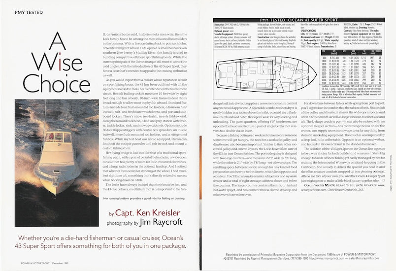 Ocean 43 Super Sport Power & Motoryacht Magazine Reprint Brochure