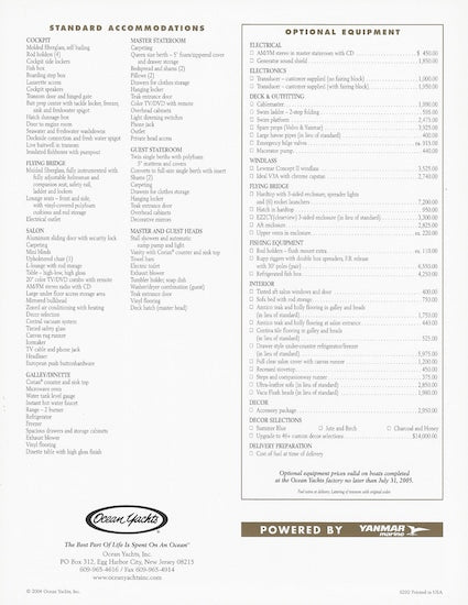 Ocean 43 Super Sport Specification Brochure