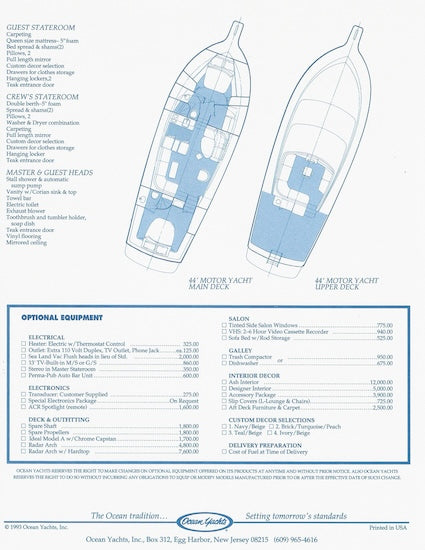 Ocean 44 Motor Yacht Specification Brochure