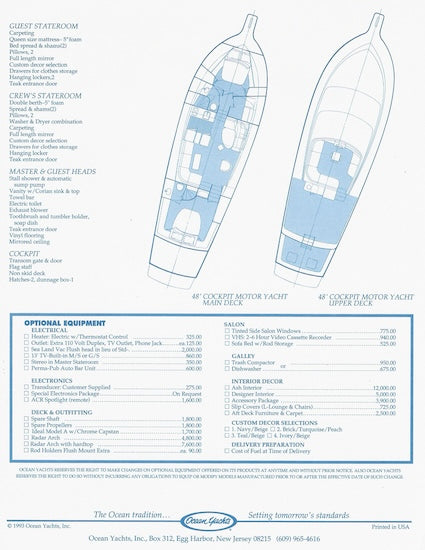 Ocean 48 Cockpit Motoryacht Specification Brochure