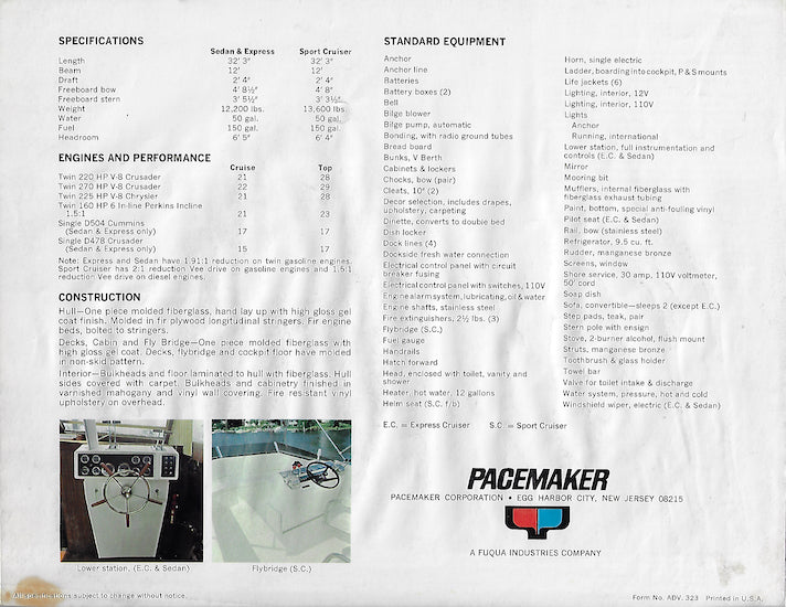 Pacemaker 32 Convertible Sedan, Express Cruiser & Sport Cruiser Brochure
