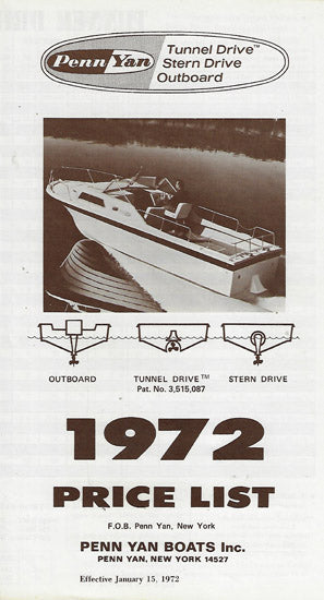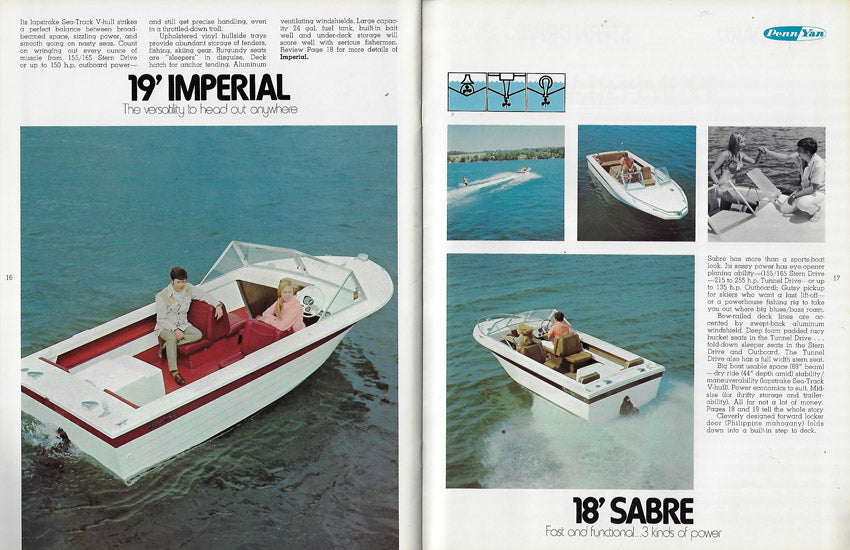 Brochure Covers: Penn YanSabre, Imperial, Explorer, Montego. Barracuda, Avenger & Vindicator