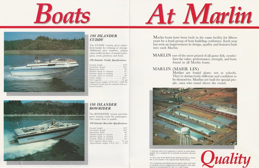 Marlin 1980s Runabout & Cruisers Poster Brochure