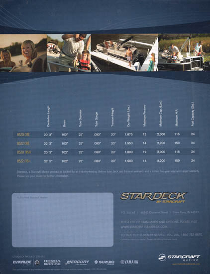 Brochure Covers: Starcraft Stardeck 8520 Fish, 8522 Fish, 8520 CRE & 8522 CRE