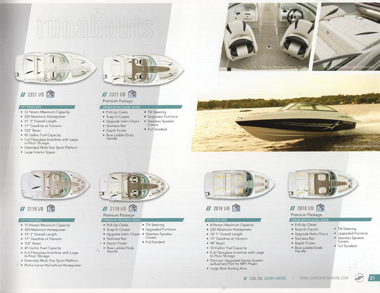 Brochure Covers: Starcraft Limited 185, 195, 2018, 2119, 2321, Star Step 229, 220, 221, 241, Limited 1915, 2000 & 2410