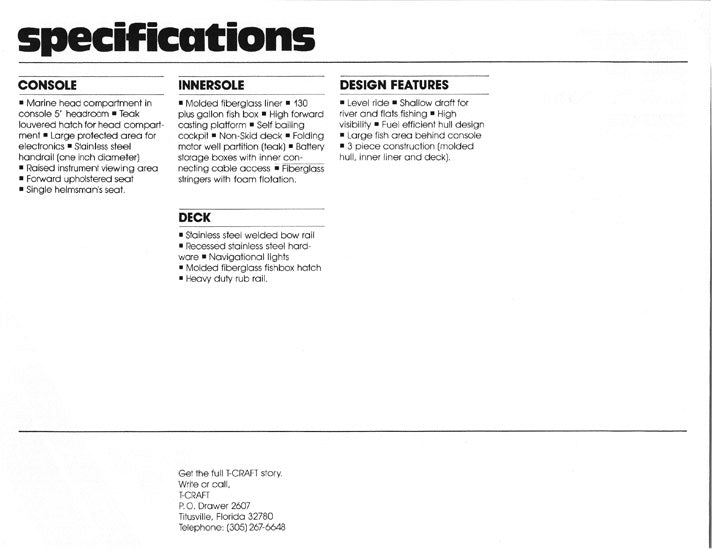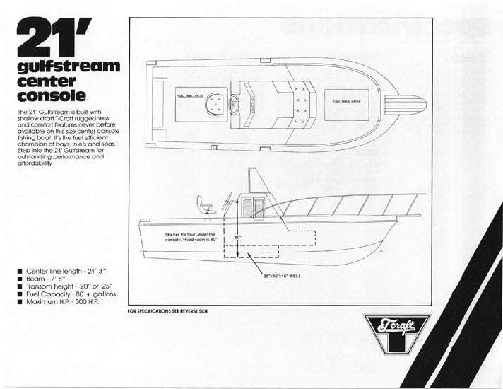 T Craft Gulfstream 21 Center Console Specification Brochure