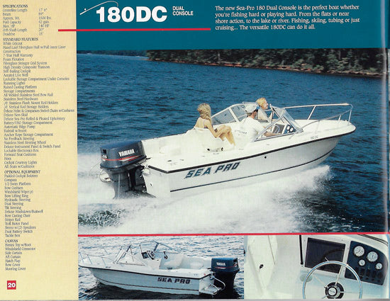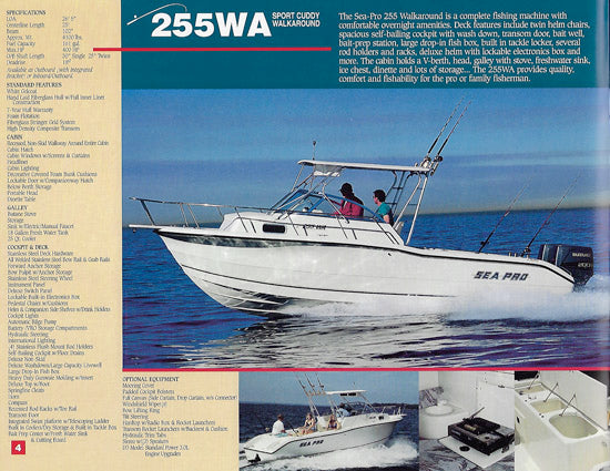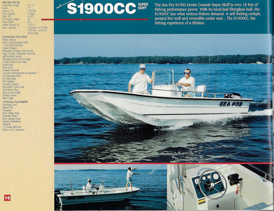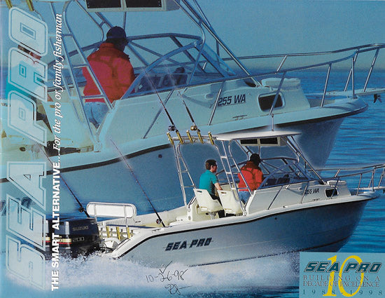 Brochure Covers: Sea Pro Walkaround 190, 210, 235, 255, Center Console 170, 180, 190, 210, 220, 235, 255, Bay Boat 1900, 2100, Dual Console 170, 180 & 190