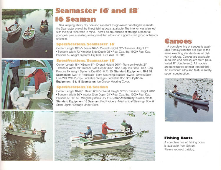 Brochure Covers: Sylvan Space Ship 15, 17 19, Canoes, Seamaster 16, 18, Seaman 16, Sportster 14, 16, 18, Skipper 18, T160, V170 & V197