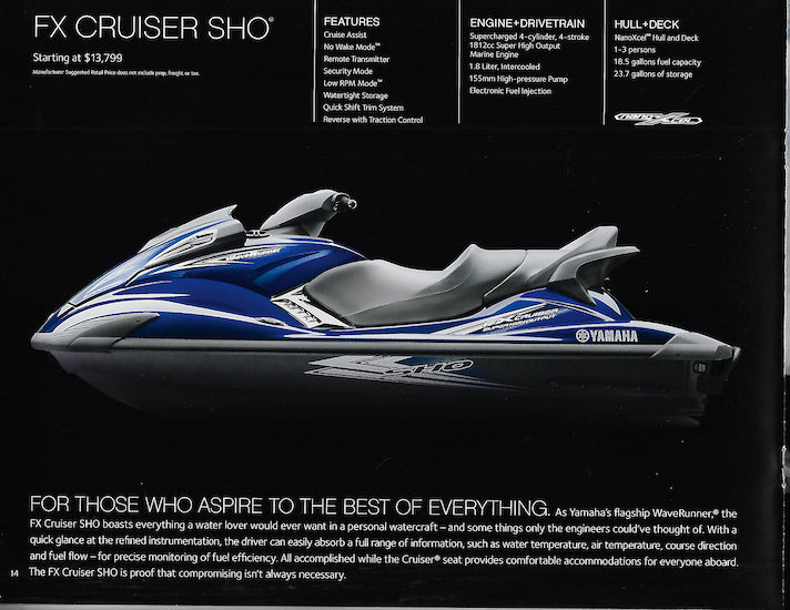 Brochure Covers: Yamaha FZR, FZS, FX SHO, FX HO, FX Cruiser SHO, FX Cruiser HO, VX Cruiser, VX Deluze, VX Sport, VX & Superjet